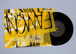 One 7” vinyl record tucked inside a printed and folded glassine poster.