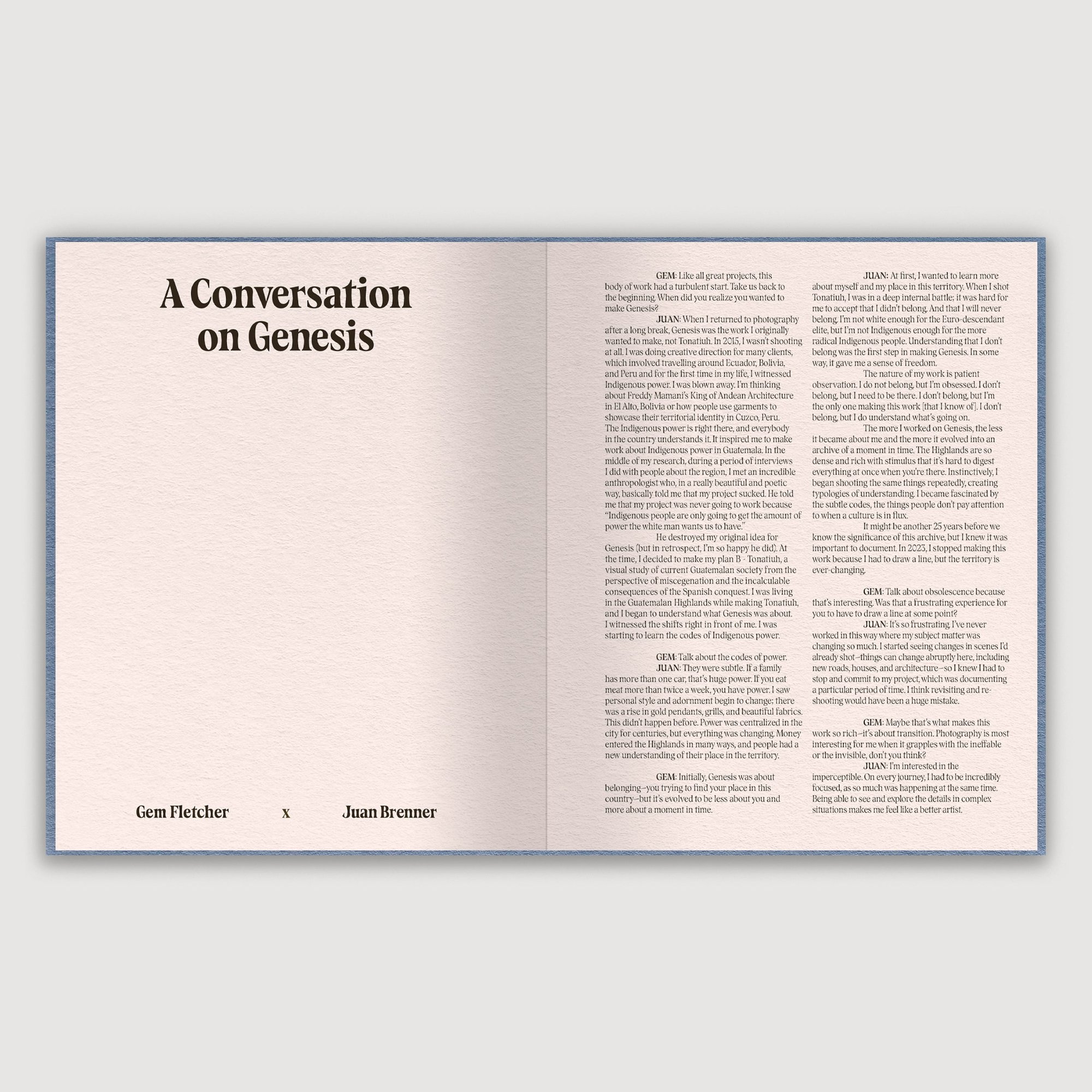 Texts include an essay by Julio Serrano, a conversation between Juan Brenner and Gem Fletcher and a full index of image plates and descriptions.