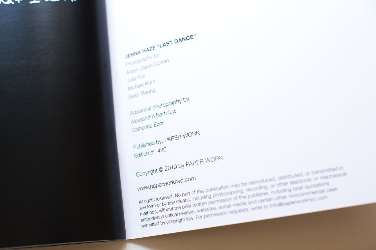 "Seven years ago, Jenna Haze officially retired from performing in adult films, leaving fans in an uproar. In 2017, she embarked on her final dance tour, selling out clubs across the US in order to give her fans one last chance to meet her in an adult-related capacity before completely retiring from feature dancing this past February. By enlisting documentary style photographers Sean Maung, Mike Krim, Adam Jason Cohen and Julia Fox in her commencement tour, Haze and PAPER WORK boldly capture the raw grittiness and stardom that illuminates her final act."