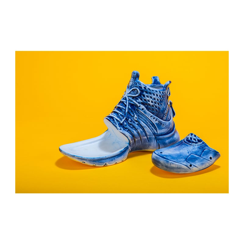 A street wear classic, the blue and white ceramic incense burner takes the shape of the NikeLab x Acronym Air Presto.